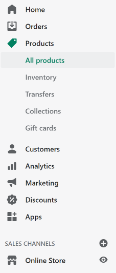 - Products > Collections : 일종의 카테고리 역할과 비슷하다.