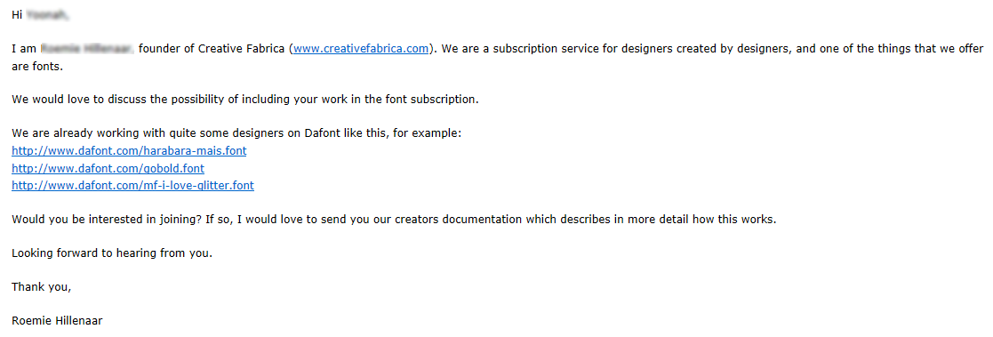 제가 블로그에서 찾아보니, 무료 폰트 제공하는 서비스로 크리에이티브 파브리카(Creative Fabrica)를 소개하는 경우가 대부분이더군요. 아마도 수익을 판매자 모두와 공유하는 특이한 아이디어를 가진 서비스인지 아는 분은 한국에서 거의 없지 싶습니다.